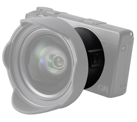 Dedicated to the Ricoh GR IV digital camera, the GA-3 Lens Adapter is required for attaching the GW-4 Wide Conversion Lens or a 49mm filter to the camera's built-in lens.