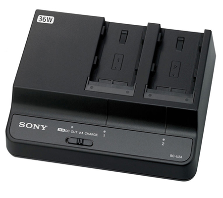 The BC-U2A battery charger can simultaneously charge two compact BP-U90, BP-U60 / 60T or BP-U30 Lithium-ion batteries at high speed