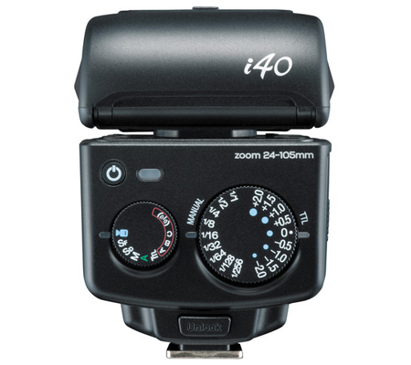 The i40 features full manual control and a range of modes for getting the look you desire from your lighting. These include slow-speed, high-speed, 1st and 2nd curtain synchronization in addition to variable power from 1/1 to 1/256. The flash runs on 4 AA batteries and includes an external diffuser, soft case, and stand.