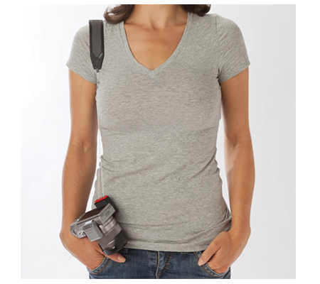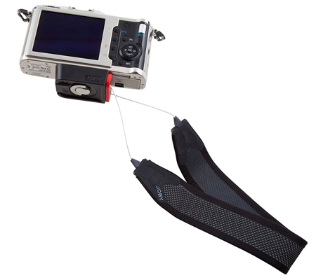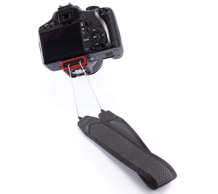 Once the strap is attached to the tripod socket, you're in wrist mode. A simple sliding adjuster allows you to custom fit the strap to your wrist. If you prefer a neck strap, simply release the lock on the 1/4"-20 plate and the strap extends to neck length supported by a strong cord. For shoulder use, just sling the strap over your shoulder and, again, you're ready to go. To return to wrist mode, just unlock the locking mechanism and the strap instantly retracts.