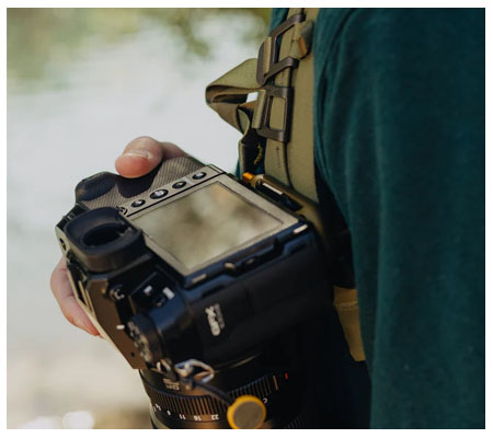 The all-new Capture is the most secure, convenient, accessible way to carry your camera, period. Unlike a camera strap, Capture keeps your camera rigidly stable while hiking, biking, or moving around the studio. Unlike a camera bag, Capture keeps your camera instantly accessible with the click of a button. Includes 2 components: a metal clip that clamps to any backpack strap, belt, or bag, and an Arca tripod-compatible plate that screws into the bottom of your camera. Your camera locks into the clip, where it is held rigidly and securely. Press the lockable quick-release button to remove. Holds well over 200 lbs. (90kg), making it strong enough for the heaviest of pro camera/lens combinations.