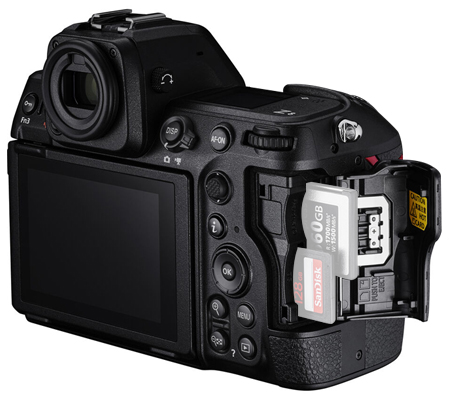 | CARD SLOT | 1 CFexpress card or XQD card and 1 Secure Digital (SD) card. Either card can be used for overflow or backup storage, for separate storage of NEF (RAW) and JPEG or HEIF pictures, or for storage of duplicate JPEG or HEIF pictures at different sizes and image qualities; pictures can be copied between cards. |