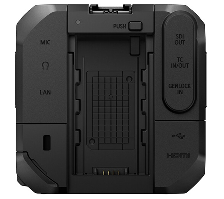 Its compact form measures less than 4" square and weighs only 1.2 lb, so it can be used on gimbals or drones for high-quality stabilized footage. Its internal fan keeps the camera cool during long shoots, and its aluminum and magnesium housing provides protection and adds to the cooling factor. It also features four 1/4"-20 mounting threads for mounting on a plate, cage, or tripod mount. There are four user-programmable function buttons around the housing, as well as tally lights on the front and rear. You can power the BGH1 using the included power adapter, with a separately available high-capacity VBR-type battery using its integrated mount, or by using PoE+ (Power-over-Ethernet) via the LAN port with compatible PoE equipment. There is also a cable lock included for keeping your camera cables secure, so they don't disconnect.
