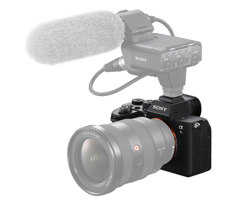 • Multi Interface Shoe supports working with the optional ECM-B1M Shotgun Microphone or XLR-K3M XLR Adapter Kit, which provide improved, clear audio recording sound by sending a digital audio signal to the camera, opposed to an analog signal.
