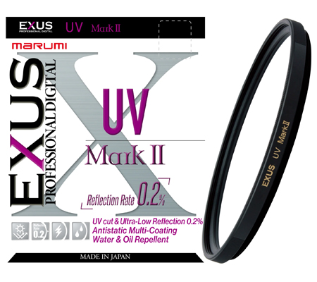 Marumi EXUS UV Mark II adalah model perlindungan UV unggulan yang disempurnakan, terutama sesuai dengan anggapan bahwa filter harus selalu dipasang pada lensa.