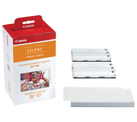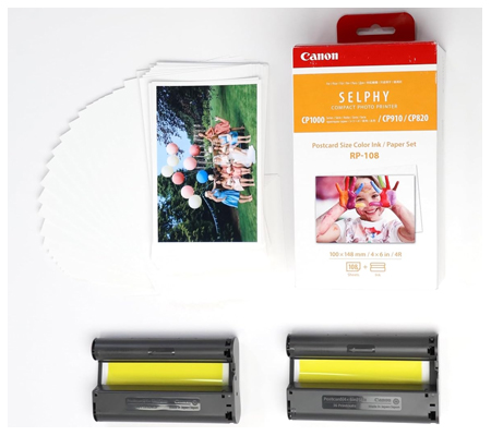 The RP-108 colour ink and paper set gives you ink and paper for up to 108 standard postcard-size prints. At 100 x 148mm (4x6”), the RP-108’s print size is perfect for your heart-warming family albums or photo frames.
