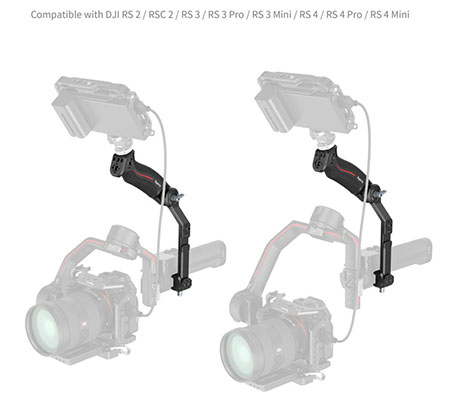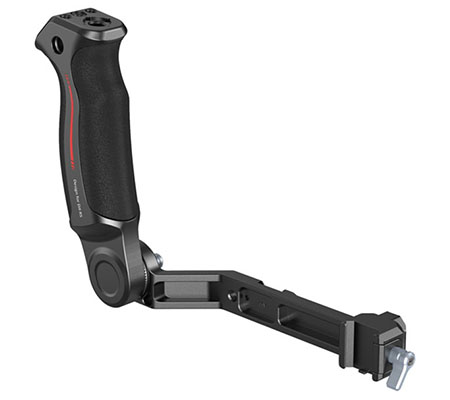 SmallRig Sling Handle for DJI RS 2 / RSC 2 / RS 3 / RS 3 PRO / RS 3 mini / RS 4 / RS 4 Pro / RS 4 Mini 3028D is designed to reduce arm fatigue during low-angle shooting and offers plentiful accessory mounting options. Equipped with a NATO rail for connection and features a locating pin to ensure safe and quick operation. Multiple 1/4”-20 threaded holes and ARRI 3/8”-16 location holes are built-in on the handle which allows for mounting Magic Arm 2115 and Monitor Mount 2903. With two cold shoe mounts on top and side of the handle, it can be mounted with Wireless GO and a sound receiver. Side NATO rail can attach the Monitor Mount 3026B. The handle’s angle can be adjusted to 180° via a ratchet knob and can be used as a side handle to meet the needs of different shooting scenarios. Ergonomically-designed & curved grip with anti-slip silicone gives you more comfort while holding it. Its sleek design and compact structure match perfectly with the stabilizer.