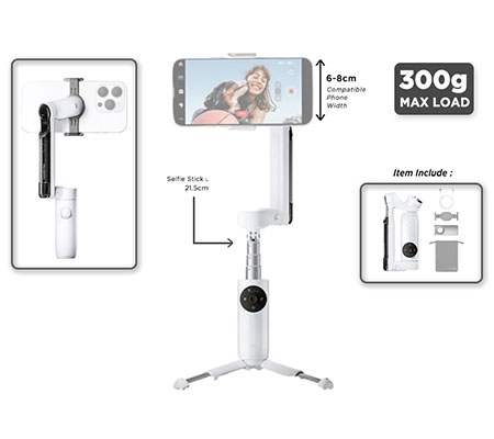 Gimbal: Approx. 369g (13oz) Magnetic Phone Clamp: Approx. 32g (1.1oz)