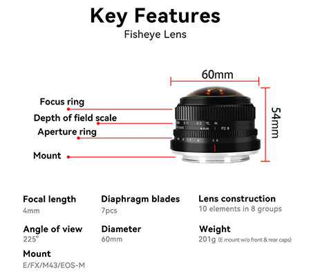 • 1x 4mm f/2.8 Circular Fisheye Lens for FUJIFILM X