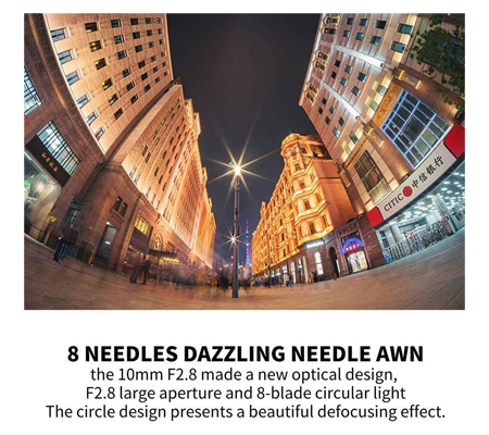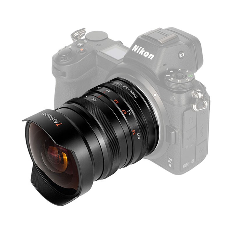 Featuring a dramatic 178° angle of view, this 10mm f/2.8 Fisheye Lens from 7artisans is an all-manual lens with a de-clicked aperture ring. Designed for Nikon Z mount cameras, this lens lets you produce unique perspectives and creative distortions. Its large viewing angle is well-suited for travel, landscapes, panoramas, nighttime scenes, underwater photography, and more. This robustly built lens is constructed of 11-elements in eight-groups and one Hoya ultra-low dispersion element, which reduces chromatic aberration. The lens's f/2.8 maximum aperture benefits working in a variety of lighting conditions while maintaining a small and lightweight form factor, and with a minimum focus distance of just 6.7" you get to experience the fun of shooting close to your subject while capturing a wide expanse.