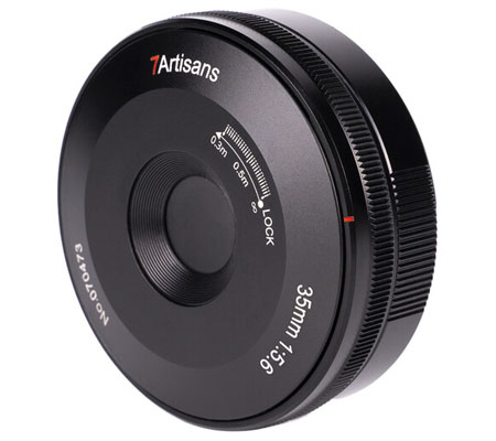 The 35mm f/5.6 Pancake Lens from 7Artisans is a compact full-frame lens for Sony E-mount cameras that makes carrying a camera on the go simple. The optical structure of five elements in four groups, with two ED ultra low dispersion glass elements, effectively reduces the chromatic aberration and renders virtually no color distortion. The maximum f/5.6 aperture provides a wide range of depth of field, soft blur effect, an exquisite circular spot, with minor vignetting for a vintage look. Focus is manually adjusted, providing a close focus distance of 11.8".