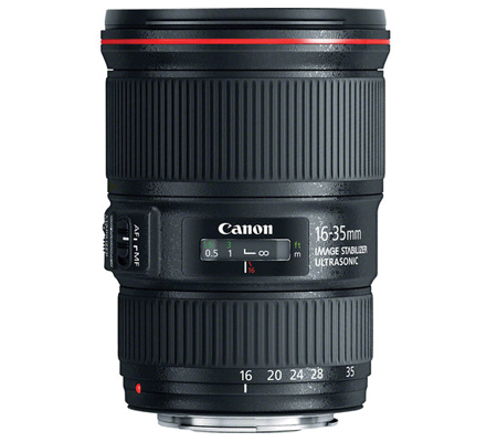 Covering a useful wide-angle focal length range, the EF 16-35mm f/4L IS USM is a CanonL-series lens distinguished by its constant f/4 maximum aperture, sophisticated optical design, and use of image stabilization to realize sharp imagery. Two ultra-low dispersion elements are used to greatly reduce color fringing and chromatic aberrations throughout the zoom range for high clarity and color accuracy, and a Super Spectra coating has also been applied to suppress flare and ghosting for improved contrast. Three aspherical elements are also featured and help to control distortion and minimize spherical aberrations for improved sharpness.
