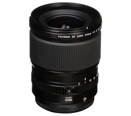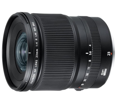 Presenting a super wide field of view, the GF 23mm f/4 R LM WR from Fujifilm is an ultra-wide 18mm-equivalent prime designed for the G-mount GFX camera system. Ideally suited for architecture and interior photography, the lens's design employs a pair of aspherical elements to control distortion and spherical aberrations for accurate rendering, and a series of low dispersion elements are also featured for improved color accuracy and clarity. Additionally, a Nano GI coating has been applied to suppress lens flare and ghosting for improved contrast and color. Balancing the optical attributes, the lens also utilizes a linear AF motor with an internal focusing design for quick and quiet focusing performance, and a manual aperture ring also avails intuitive exposure adjustment and a Command position permits making camera-based aperture selections. Additionally, the lens is also dust-, freeze-, and weather-resistant for use in trying environmental conditions.