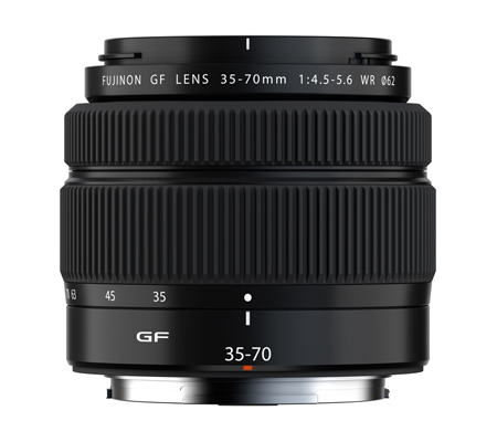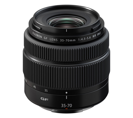 Designed for the FUJIFILM G-mount GFX camera system, this GF 35-70mm f/4.5-5.6 WR Lens is a wide-angle zoom offering a 28-55mm equivalent focal length range. Covering wide-angle to normal-length perspectives, this zoom is well-suited to everyday shooting applications. Weighing less than a pound and offering a closed length of under 3", this compact and portable lens is engineered to produce images or video with incredible detail and minimal focus breathing, providing the perfect gateway to the capabilities and possibilities of the large format GFX System. Expansive landscapes, delicate portraits, and gritty documentaries are all within reach in the hands of the right storyteller. Additionally, the lens also features a dust-, freeze-, and weather-resistant design for use in inclement conditions.