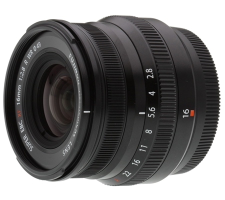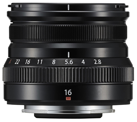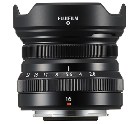 Continuing FUJIFILM's series of compact, portable primes, the black XF 16mm f/2.8 R WR is a 24mm-equivalent wide-angle lens, well-suited to landscape, nature, and architectural shooting. Its f/2.8 maximum aperture balances size and speed, and is suitable for working in available lighting conditions while also limiting the overall size and weight of the lens for everyday use. The optical design features two aspherical elements to reduce distortion and spherical aberrations in order to produce greater sharpness and accurate rendering. A Super EBC coating is also used to control flare and ghosting for improved contrast and color fidelity when working in bright and backlit conditions. Complementing the optics is a stepping motor, along with an internal focusing design, which provides quick and especially quiet focusing performance. Additionally, the lens is weather-sealed to suit working in inclement conditions.