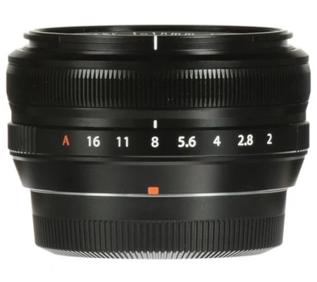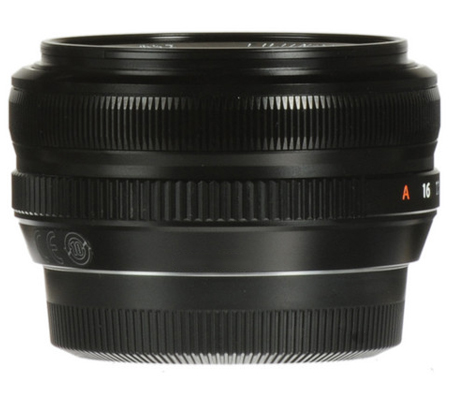 To take advantage of the X-series cameras' mirrorless design, the rear element of the lens is as close as possible to the sensor, minimizing the back focus distance appreciably. The lens construction includes a metal barrel, Super EBC coating for improved optical performance, and it delivers improved center-to-edge resolution and brightness free from chromatic aberration. The final lens element, positioned as close to the sensor as possible, makes the incidence angle of the light reaching the sensor smaller, and thus reduces vignetting and color shading, while helping to keep the lens's overall size small. This lens has a maximum magnification of 0.14x, and the aperture ring has 1/3-stop click stops for more precise exposures.