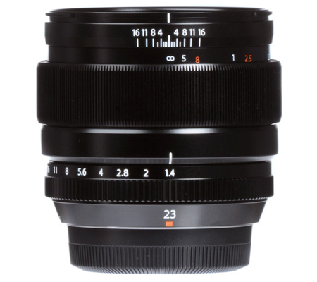 The Fujifilm XF 23mm f/1.4 R Lens is a prime wide-angle lens that provides a 35mm-equivalent focal length of 35mm, making it a suitable lens for everyday shooting. This all-around lens is further benefitted by the fast f/1.4 maximum aperture, which is especially useful in low-light conditions and for creating shallow depth of field and selective focus imagery. Also aiding in manual focus control are engraved camera-to-subject and depth of field scales on the barrel that help with setting the hyperfocal distance and pre-focusing techniques.