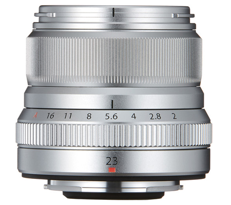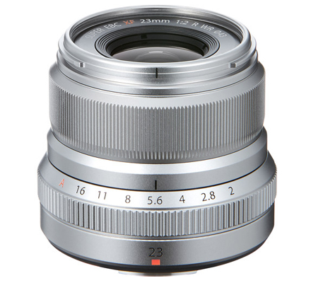Compact, fast, and weather resistant, this silver wide-angle XF 23mm f/2 R WR Lens from Fujifilmis a great choice for those looking for a lightweight and effective imaging kit. Optimized for X-series mirrorless cameras equipped with APS-C sensors, this 23mm lens offers a classic 35mm equivalent perspective, a view much loved by street photographers. The lightweight design and fast f/2 aperture make it a great choice for those looking to stay discreet while shooting. Also, by using two aspherical elements in its optical construction, the lens is able to combat distortions and aberrations for a clear, sharp image. In addition, the 23mm lens uses a Super EBC coating to minimize flare and ghosting.