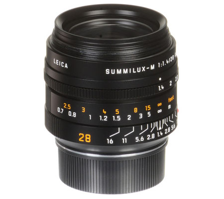 A wide, fast prime designed for Leica M-mount rangefinder cameras, the black Summilux-M 28mm f/1.4 ASPH. Lens excels in low-light conditions and is also characterized by its consistent sharpness and clarity throughout the aperture and focusing ranges. One aspherical element and a floating elements system, as well as seven elements made from anomalous partial dispersion glass, help to produce color-correct, sharp imagery with minimal distortion and aberrations. The manual focus design of the lens is aided by a focusing tab for critical control and the fast f/1.4 also lends itself to selective focus control for isolating specific subjects within the frame. Featuring a versatile wide-angle focal length with a sophisticated optical design, the Summilux-M 28mm f/1.4 ASPH. rounds out the full set of fast-aperture primes dedicated to offering the utmost in imaging capabilities.