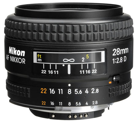 A comfortable wide-angle, the Nikon AF NIKKOR 28mm f/2.8D is a compact and versatile lens well-suited for landscape, nature, and documentary shooting. Its modest f/2.8 maximum aperture strikes a balance between its sleek form factor and being fast enough for working in low-light conditions. In regard to the optics, a Super Integrated Coating has been applied to individual elements to control flare and ghosting for improved contrast and color rendering when working in bright and backlit conditions. Additionally, a rounded seven-blade diaphragm contributes to a pleasing bokeh quality.
