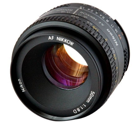 The AF NIKKOR 50mm f/1.8D Lens from Nikon is a supremely lightweight lens that offers a f/1.8 maximum aperture for effective low light shooting and shallow depth of field control. A standard 50mm focal length on FX format cameras, it provides a 75mm focal length equivalence when used on DX format Nikon DSLRs.