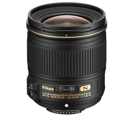 A flexible wide-angle prime, the Nikon AF-S NIKKOR 28mm f/1.8G mixes a comfortable, broad field of view with a relatively compact design. A bright f/1.8 maximum aperture excels in difficult light conditions and also affords control over depth of field for isolating subjects. The optical design includes a pair of aspherical elements, which help to suppress distortion and spherical aberrations in order to realize high sharpness, even illumination, and accurate rendering. Also benefitting image quality, both a Nano Crystal Coat and a Super Integrated Coating have been applied to control flare and ghosting for improved contrast and color accuracy. Additionally, complementing the imaging capabilities, a Silent Wave Motor affords fast and precise autofocus performance, along with full-time manual focus override, to benefit both stills and video applications.