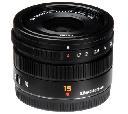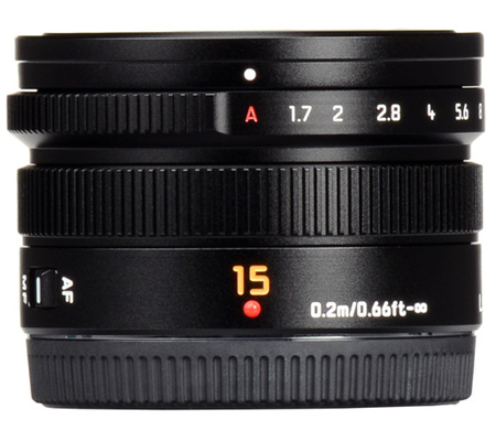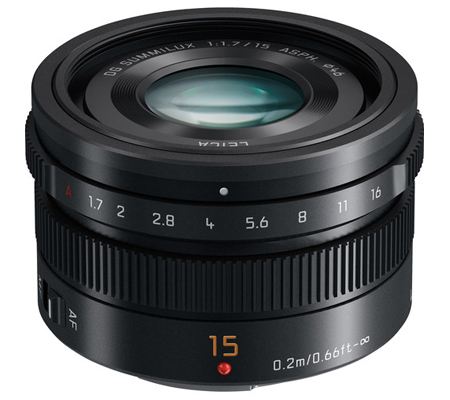Fast and versatile, the Leica DG Summilux 15mm f/1.7 ASPH. from Panasonic is a 30mm equivalent wide-angle lens for Micro Four Thirds mirrorless cameras. Its bright f/1.7 maximum aperture benefits working in low-light conditions and also avails greater control over the focus position for shallow depth of field and selective focus techniques. Intuitive control over the aperture selection is also possible through the use of the manual aperture ring. In regard to focus, an internal focusing system with a stepping AF motor promotes fast, quiet, and smooth performance. The optical design incorporates three aspherical elements to reduce distortion and spherical aberration for sharper imagery with greater overall clarity. Additionally, a Nano Surface Coating has been applied to lens elements to suppress lens flare and ghosting for more contrast-rich, color-neutral photos and movies.