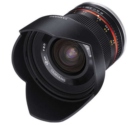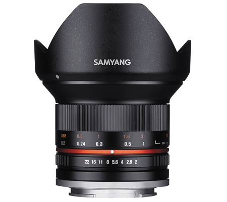 The black 12mm f/2.0 NCS CS Lens for Fujifilm X-Mount from Samyang is a wide-angle prime lens designed specifically for use with APS-C format image sensors. Providing a 35mm-equivalent focal length of 18mm and a broad 98.9° angle of view, this lens is well-suited for architectural, interior, and landscape images. Its fast f/2.0 maximum aperture is beneficial to working in low-light conditions.