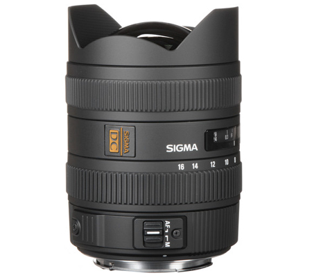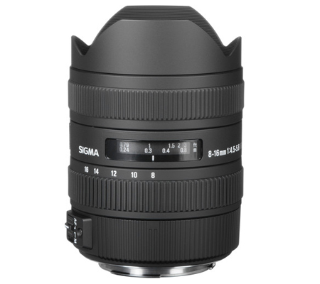 The Sigma 8-16mm F4.5-5.6 DC HSM is an ultra-wide zoom that has a 35mm equivalent angle of view of a 12-24mm lens when used on DSLRs with APS-C size image sensors. Sigma's FLD glass elements, equal to fluorite glass, correct for distortions and color aberrations to deliver beautiful high contrast images.