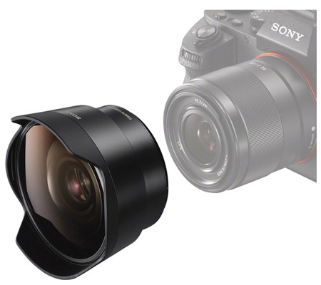 The 16mm Fisheye Conversion Lens for FE 28mm f/2 Lens from Sony lets you broaden the focal length of your 28mm full-frame lens to a 16mm lens with 180° perspective for inclusive and distorted creativity. As this converter lens is uniquely compatible with the FE 28mm f/2 lens, it transmits EXIF data through the host lens to the camera. The optical design of the converter lens is comprised of 5 elements in 4 groups and when on the 28mm lens, it provides a maximum aperture of f/3.5 and a minimum focus distance of 8.8". When the lens is used with an APS-C E-Mount camera, the converter lens provides a 105° angle of view and a 24mm focal length equivalent. It is a lightweight, compact addition to the 28mm lens and features a built-in petal-type lens hood to shield the lens from unwanted light.