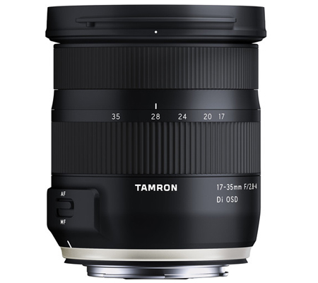 Lightweight and versatile, the Canon EF-mount 17-35mm f/2.8-4 DI OSD Lens from Tamron covers a range of wide-angle focal lengths while maintaining a bright maximum aperture. The variable aperture of f/2.8-4 provides exceptional control over depth of field and allows enough light in to excel in many low-light situations. Housed in the lens, which weighs slightly more than a pound, are 15 elements in 10 groups that include Tamron's Broad-Band Anti-Reflection Coating to reduce reflections, ghosting, and flares. The front lens element is coated in fluorine to more easily dispel dirt, dust, moisture, or fingerprints, and be easier to clean. The lens is also sealed against moisture along the barrel. Additionally, the lens's firmware can be kept up to date via Tamron's optional TAP-in console.