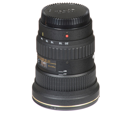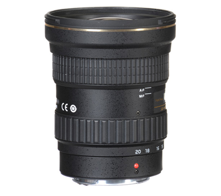A fast wide-angle zoom for Canon EF mount APS-C-format DSLRs, the AT-X 14-20mm f/2 PRO DX Lens from Tokina spans a concise 22.4-32mm equivalent focal length range while retaining a bright, constant f/2 maximum aperture. Ensuring a high degree of sharpness and clarity throughout the wide-angle range, the optical design features an array of aspherical and Super Low Dispersion elements to minimize chromatic and spherical aberrations. A multi-layer, anti-reflective coating has also been added to individual elements to suppress flare and ghosting for increased contrast and color fidelity when working in strong lighting. In regard to handling, an internal focusing design enables quick, accurate autofocus performance that can quickly be overridden for manual control using the One-Touch Focus Clutch Mechanism. Well-suited to working in a variety of situations, the variety of wide-angle perspectives and bright maximum aperture are especially beneficial to landscape, reportage, and other environmental photography applications.