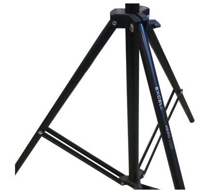 Light Stand Excell Hero 100 Merupakan versi light stand yang lebih kecil dari excell hero-200. Bentuk dan bahan yang digunakan sama dengan excell hero-1, namun ukuran yang lebih besar dan tinggi membuat light stand ini lebih mampu menahan beban hingga maximal 3.5kg. Namun light stand ini mempunyai berat yang cukup ringan, cocok sekali untuk di bawa-bawa ke lapangan atau pada saat anda harus berpindah-pindah tempat.