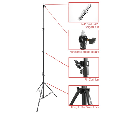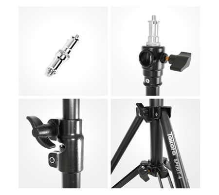TAKARA SPIRIT-4 adalah light stand dari TAKARA yang telah dilengkapi dengan Air Cushion, yang berfungsi untuk mengamankan perlengkapan anda ketika sedang diturunkan dari light stand SPIRIT-4. SPIRIT-4 juga memiliki spigot 1/4″ dan 3/8″ yang dapat dilepas, ditambah juga lubang horizontal yang memberi anda labih banyak keleluasaan dalam menggunakan SPIRIT-4.
