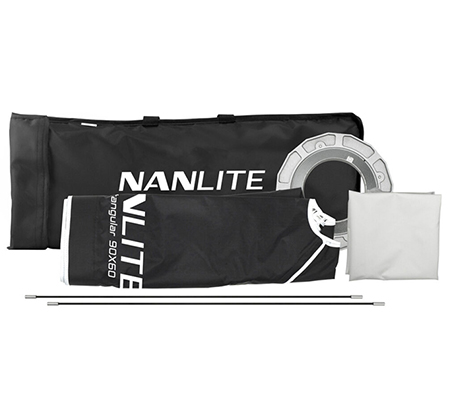 The Nanlite Rectangular Softbox 90x60 with Bowens Mount casts attractive, soft light on your subjects and environments and adds directional control. The rectangular shape makes it a great choice for key or fill lights, and its versatile 35 x 24-inch size makes it adaptable for use on both small and large sets.