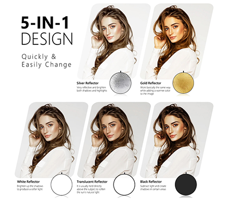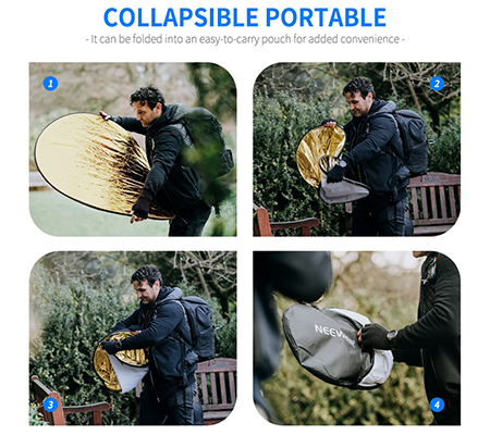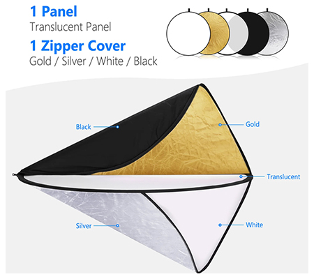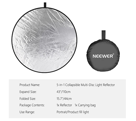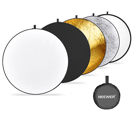 This NEEWER 5-in-1 Collapsible Multi-Disc Light Reflector with Bag Silver Gold White & Black.