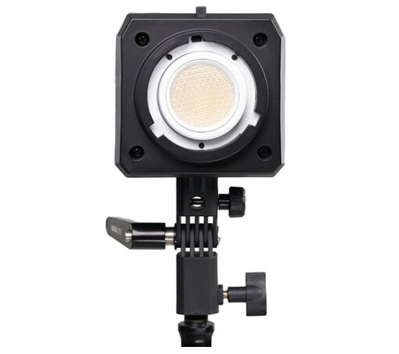 One of the reasons the FC-120C can be so compact is that it has the FM Mount. The nicely constructed 45° Reflector utilizes this mount, and provides smooth, even light. There are many compact light modifiers available for FM Mount that are also lightweight, like the FL-11 Fresnel, FMM softboxes, and PJ-FMM Projection Attachments (all sold separately). The included Bowens adapter opens up a world of light-modifier compatibility. There's even an integrated umbrella mount.