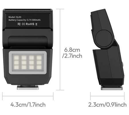 SL03 offers a 90° adjustable angle, allowing you to switch between direct and bounce flash for more versatile lighting options.