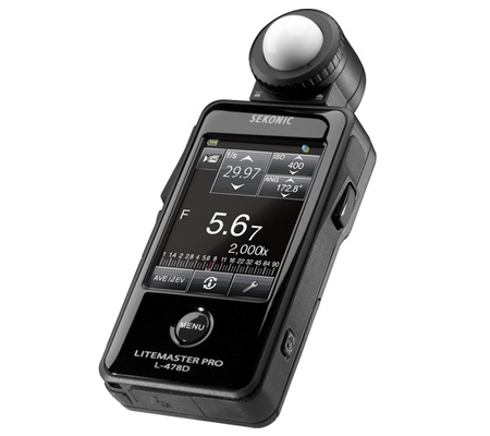 The Sekonic Litemaster Pro L-478D Light Meter is an incident and flash meter featuring a color touch screen interface. The touch screen-based navigation lends itself to a highly intuitive and efficient workflow, allowing you to quickly modify exposure settings and navigate menus. This meter is also highly versatile and capable of measuring flash, incident and reflected light for still, HD video, or cine applications.