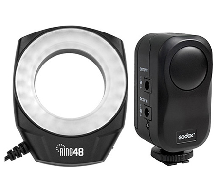 Get ready for your close-ups with the RING48 Macro Ring LED Light from Godox. Equipped with 48 daylight-balanced 5500K LEDs, photographers and videographers can enjoy a bright constant light source with an effective range of 1.1-40". Also, the circular design helps evenly illuminate small macro subjects as well as create beautiful catchlights for portraits. For added control over the light users can choose between having the entire ring on or just the left or right side, allowing users to control how the light falls on the subject.