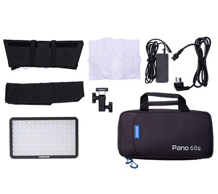 Compact, lightweight, and easily transportable in its included carrying bag, the Pano 60c kit comprises a variety of accessories to refine and sculpt light. Each Pano 60c kit has a softbox, light control grid, diffuser, Ace E-lock to light stand adapter, power adapters, and cables for greater lighting flexibility. The light stand adapter uses a widely universal 1/4"-20 screw mount.