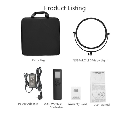 • Dimmable Brightness: You can adjust the brightness between 0-100% by 1% according to the shooting environment. • Dimmable Color Temperature: With 360pcs Bi-Color LED beads (180pcs White and 180pcs Yellow), the color temperature can be adjusted from 3200K to 5600K steplessly by a separate dimmer knob;