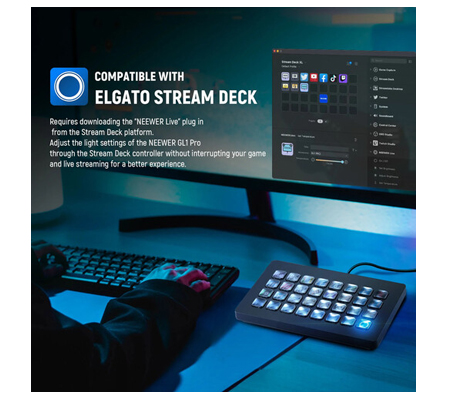 Upgraded to Compatible with Elgato Stream Deck- Requires downloading the "NEEWER Live" from the Stream Deck platform. Support dimming or adjusting the lighting temperature of the NEEWER GL1 Pro through the Stream Deck controller without interrupting your game and live streaming for a better experience.Note: Long press the power button for 3s to turn on the GL1 Pro