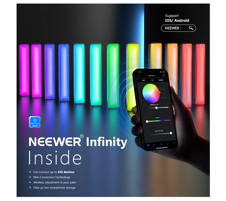 Intelligent App Control-The “NEEWER” app lets you wirelessly operate this RGB video light from up to 164’ (50m) away and take advantage of all the functions. Within the app, you can change brightness, color temperature, hue, and saturation, select scenes, and save multiple presets for future use. An RGB color wheel lets you pick any color with one tap
