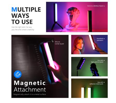 Handheld/Magnetic Mounting- The lightweight RGB1 is perfect for use as a handheld light to illuminate your subject from any perspective, and a lanyard can prevent it from dropping. It can mount on most light stands (not included) via two 1/4” screw holes or stick to metal surfaces with its inner magnet. Four adhesive metal pads attach it to non-metallic surfaces