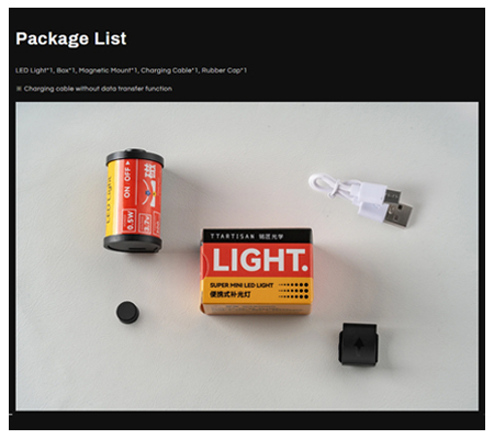 LED Light*1, Box*1, Magnetic Mount*1, Charging Cable*1, Rubber Cap*1