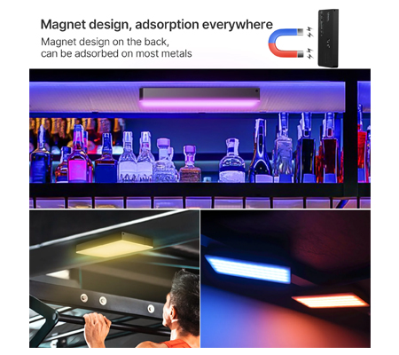 The back magnetic design is unique and can be adsorbed on a horizontal iron surface to easily achieve top fill light