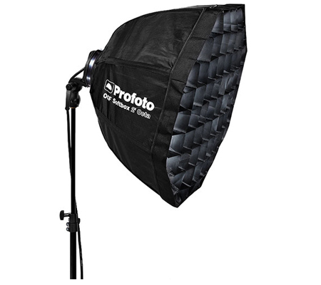 This 50° Profoto Softgrid for OCF Softbox tunnels the light of the 2' Octa softbox forward while it helps control spill and directs the light only where you want it. The grid has a clever design for mounting that entails slipping an outer skirt over front face of the softbox, thus eliminating light leaks found in some units using touch fasteners. The fabric folds down to a fraction of its open size or can be folded while mounted along with the softbox.