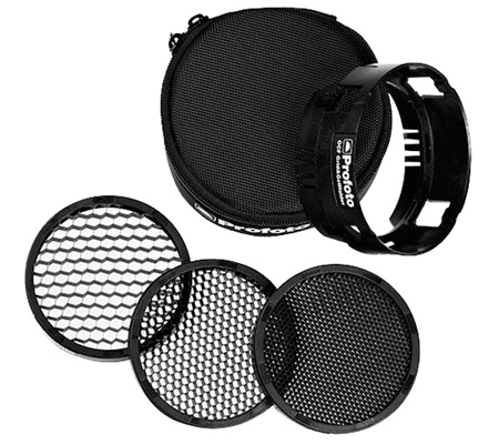 The Grid Kit for OCF Flash Heads from Profoto gives you 3 different options to narrow to B2 and B1 Off Camera Flash Heads' beam width. The kit includes 10, 20 and 30 degree grids, a grid holder and a soft bag to hold it all. Ideal for isolating a subject while darkening a background, the grids have integrated gel clips and are also a good choice for use as a hair light or rim light. Part of a system, the stackable grids can also be used in conjunction with the OCF Barndoor and Snoot.