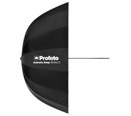 This white, 33" Profoto Deep Small Umbrella is unique in that it is lightweight yet deep and parabolically shaped. The deeper shape gives the photographer better control of the light spread. It also allows the photographer to focus and shape light by simply sliding the umbrella shaft in its holder. This white version creates a soft but still direct light, perfect for portrait and beauty shots. Attach the optional diffuser for a softer, more even light spread.